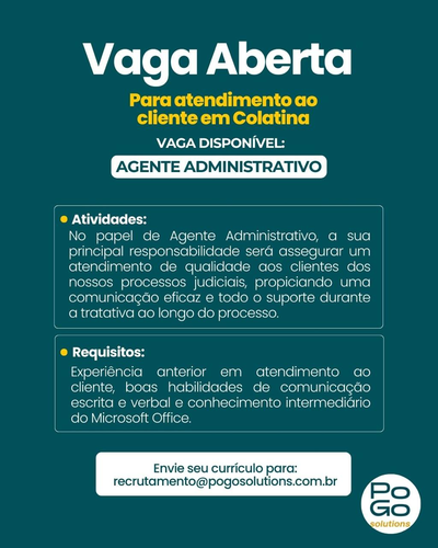 No papel de Agente Administrativo, a sua principal responsabilidade será assegurar um atendimento de qualidade aos clientes dos nossos processos judiciais, propiciando uma comunicação eficaz e todo o suporte durante a tratativa ao longo do processo.