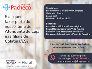 E aí, quer fazer parte do nosso time de Atendente de Loja nas filiais de Colatina/ES?
