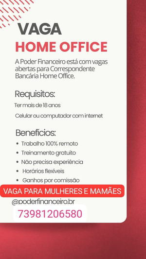 A Poder Financeiro está com vagas abertas para Correspondente Bancária Home Office.