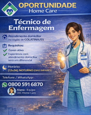 Horário: 12x36 – Noturno (Dias ímpares)
